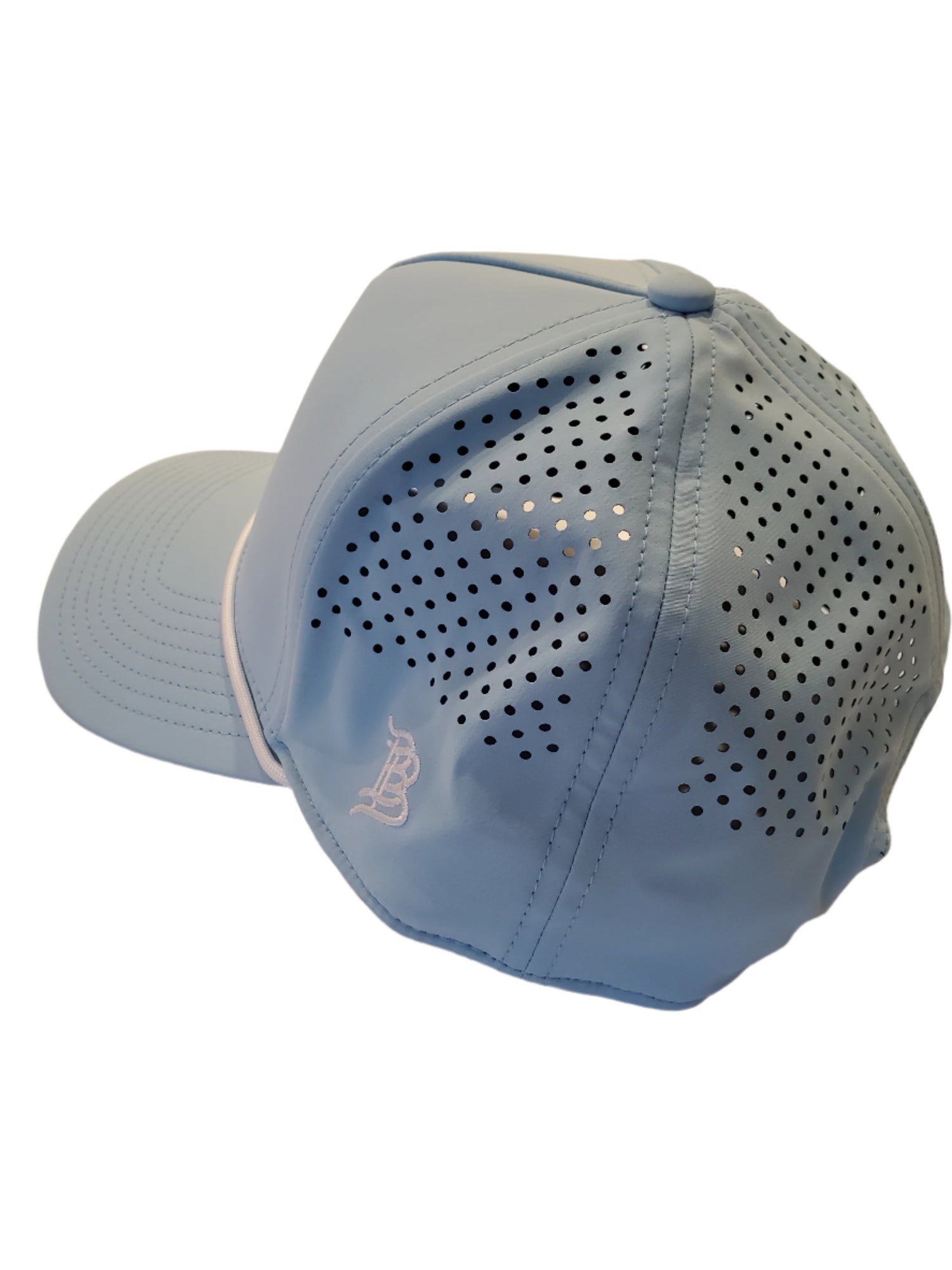 Laser cut holes back and side for Breathability, Structured crown, and Lightweight. Perfect for warm days or while exercising.